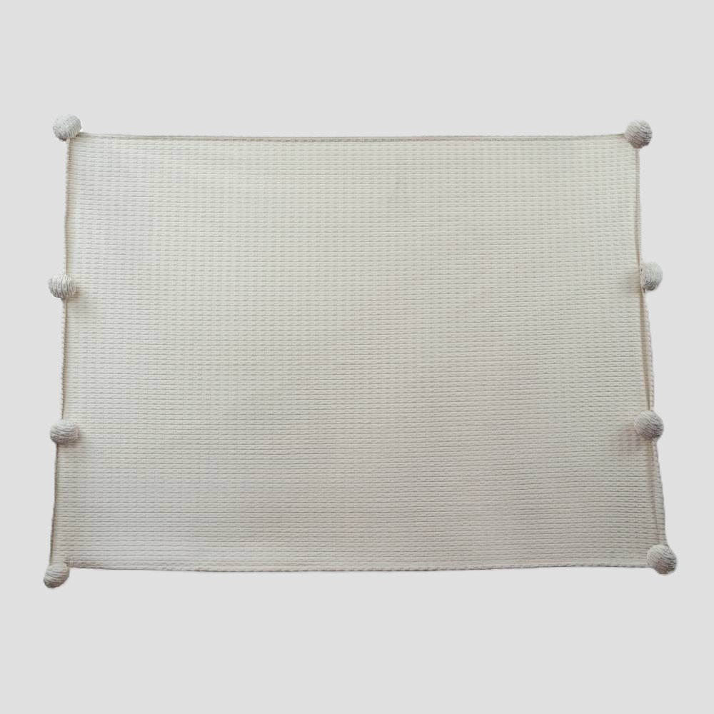 Su textura suave y su color , aportan calidez y tendencia. El detalle de los pompones extra grandes en los bordes le da un toque un elegante. Perfecta para acurrucarte o para darle ese pop de estilo a tu sofá o sillón favorito.