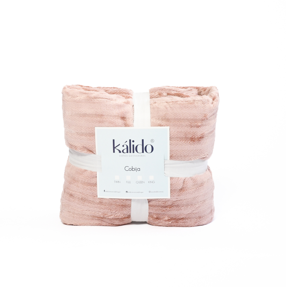Desconéctate del mundo con nuestra cobija Kálido. Su tejido aterciopelado te envolverá en un abrazo cálido y reconfortante. Disponible en 3 colores: Jade, Rosa y Taupe. Perfecta para relajarte en tu cama Full, Queen o King.