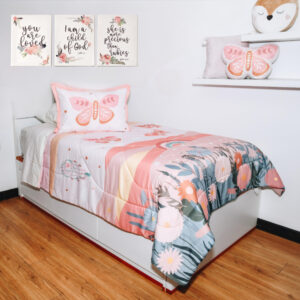 ¡Descubre la magia de la colección Atrapasueños! Este edredón con estampado de mariposas es la pieza central que tu hija necesita para transformar su habitación en un rincón de ensueño. Su diseño inspirado en los atrapasueños aporta un toque de espiritualidad y protección, creando un espacio lleno de tranquilidad y alegría.