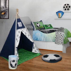 ¡Convierte la habitación de tu hijo en su propio campo de fútbol! Nuestro edredón con diseño de balón de fútbol y cancha es suave, divertido y perfecto para soñar con grandes victorias. Ideal para complementar la decoración deportiva y fomentar la pasión por el fútbol.