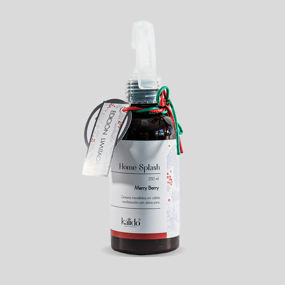 Refrescante de telas de aroma único y exclusivo de bayas de frutos rojos para aromatizar los ambientes en época navideña. Presentación en 250 ml y 500 ml.