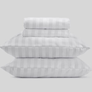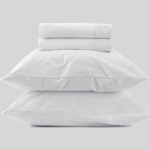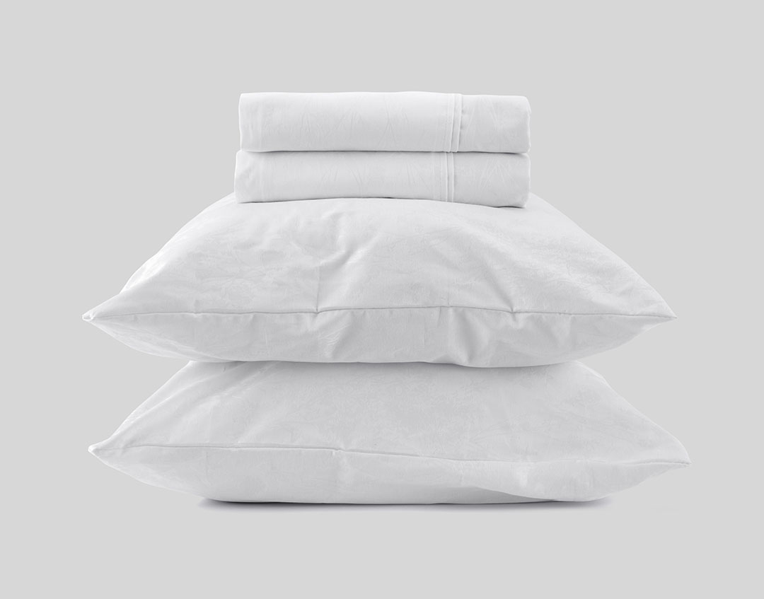 Juego de sábanas de algodón para dormitorio que cuenta con 4 diferentes tamaños (TWIN, FULL, QUEEN, KING) y en 4 diferentes diseños: Blanco llano, Blanco Lines, Blanco Leaves y Blanco guarda decorada
